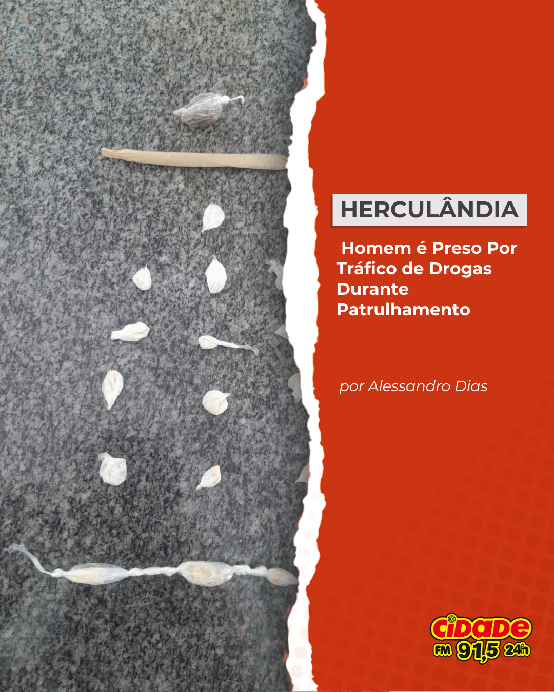 Herculândia, SP- Um homem foi preso por tráfico de drogas na manhã deste sábado (1º) na área central de Herculândia. A ação foi realizada pela Polícia Militar durante patrulhamento pela cidade.