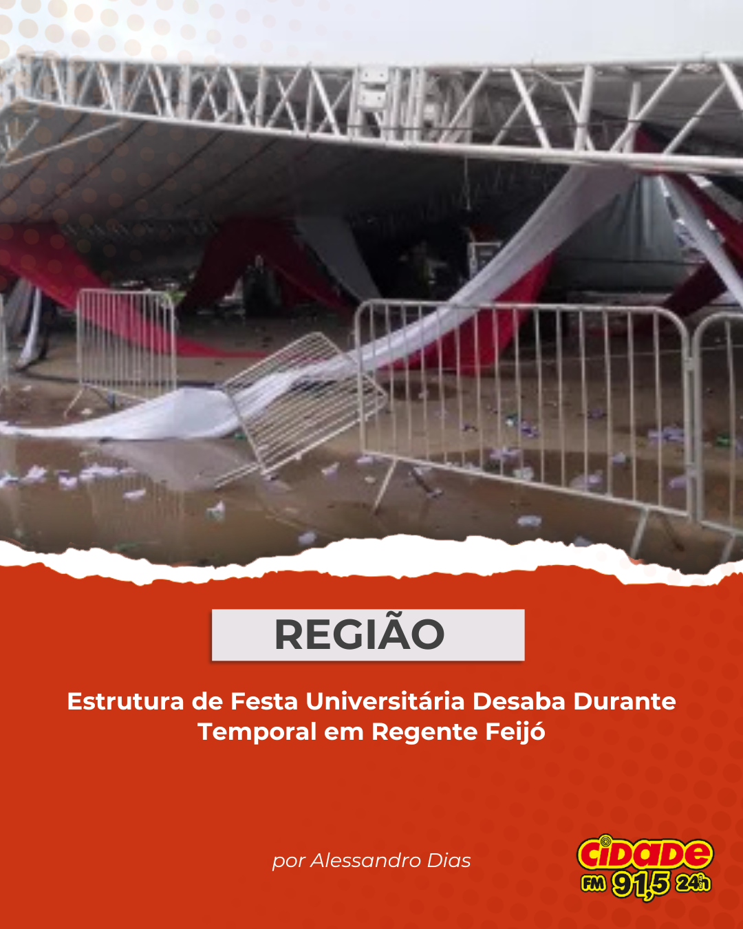 Regente Feijó, SP- Uma estrutura montada para uma festa universitária de Medicina desabou durante a noite deste sábado (1º) em Regente Feijó (SP), após uma forte tempestade atingir o local do evento.