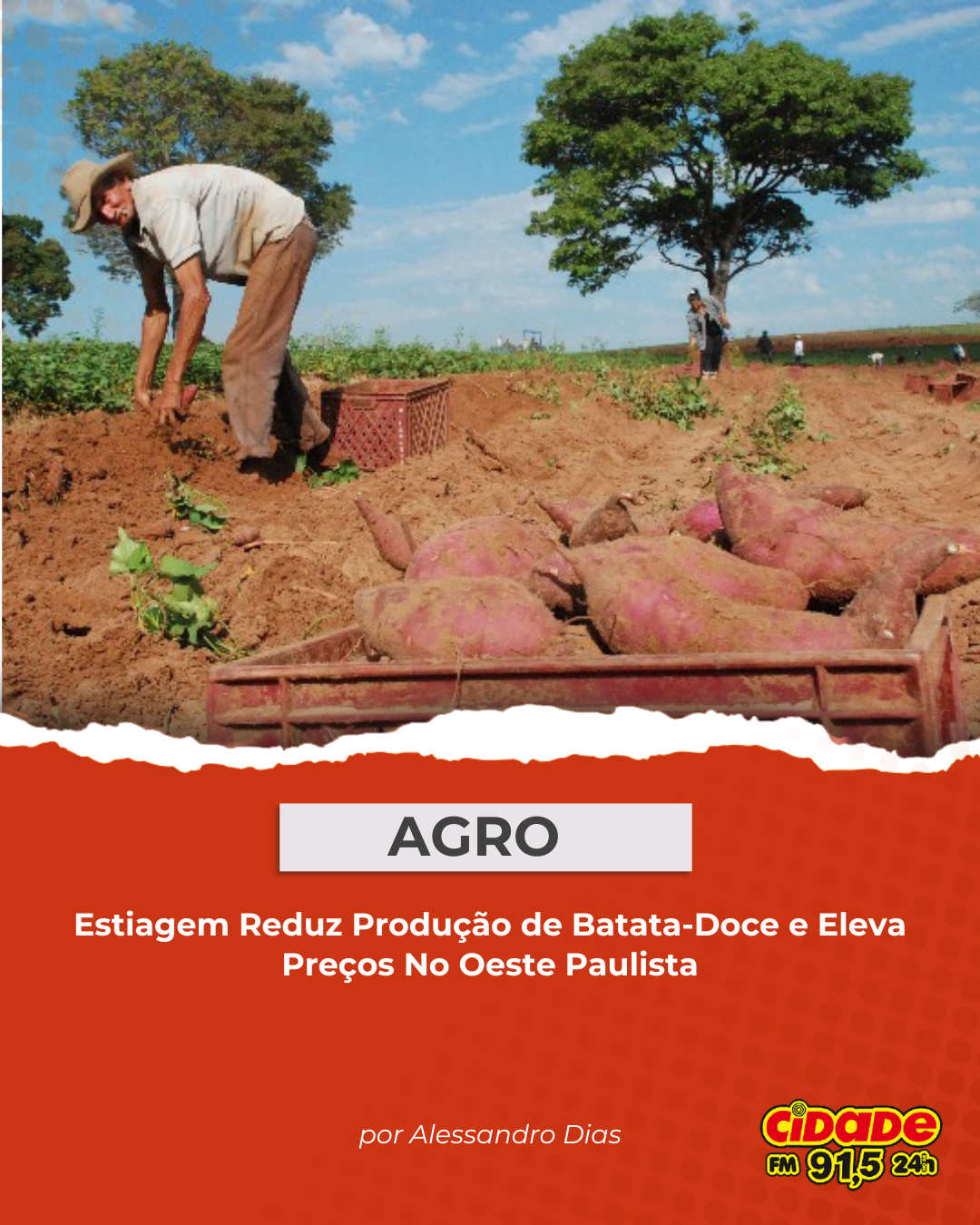 Caiabu, SP- A estiagem prolongada derrubou a produção de batata-doce no oeste paulista e provocou alta nos preços da raiz. De acordo com o Instituto de Economia Agrícola (IEA), a região, que é a maior produtora do estado, com mais de 4,5 mil hectares cultivados, enfrenta forte queda na produtividade devido à falta de chuvas.