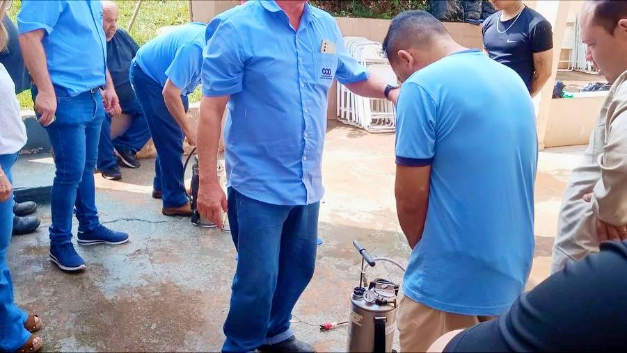 Durante a capacitação, os profissionais aprenderam sobre o uso correto dos produtos e equipamentos, garantindo mais eficiência, segurança e padronização nas ações de campo.
