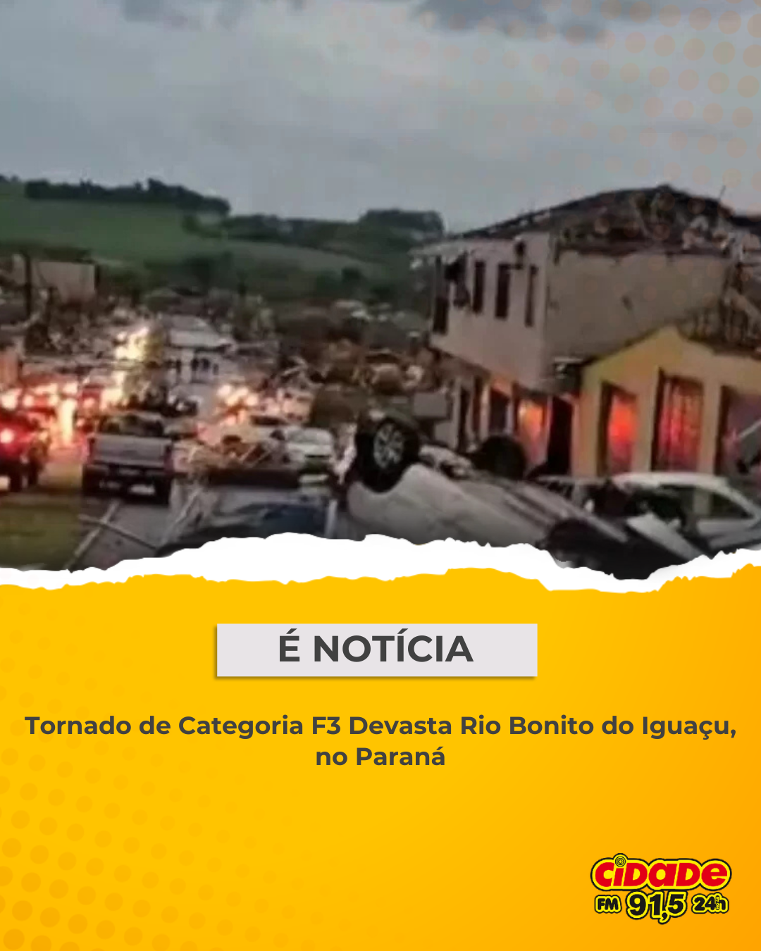 Da redação Tupã, SP- Um tornado de categoria F3 atingiu o município de Rio Bonito do Iguaçu (PR) e deixou um cenário de destruição total. Com ventos que podem ter ultrapassado 250 km/h, o fenômeno arrancou árvores, destruiu casas e arremessou veículos por vários metros.