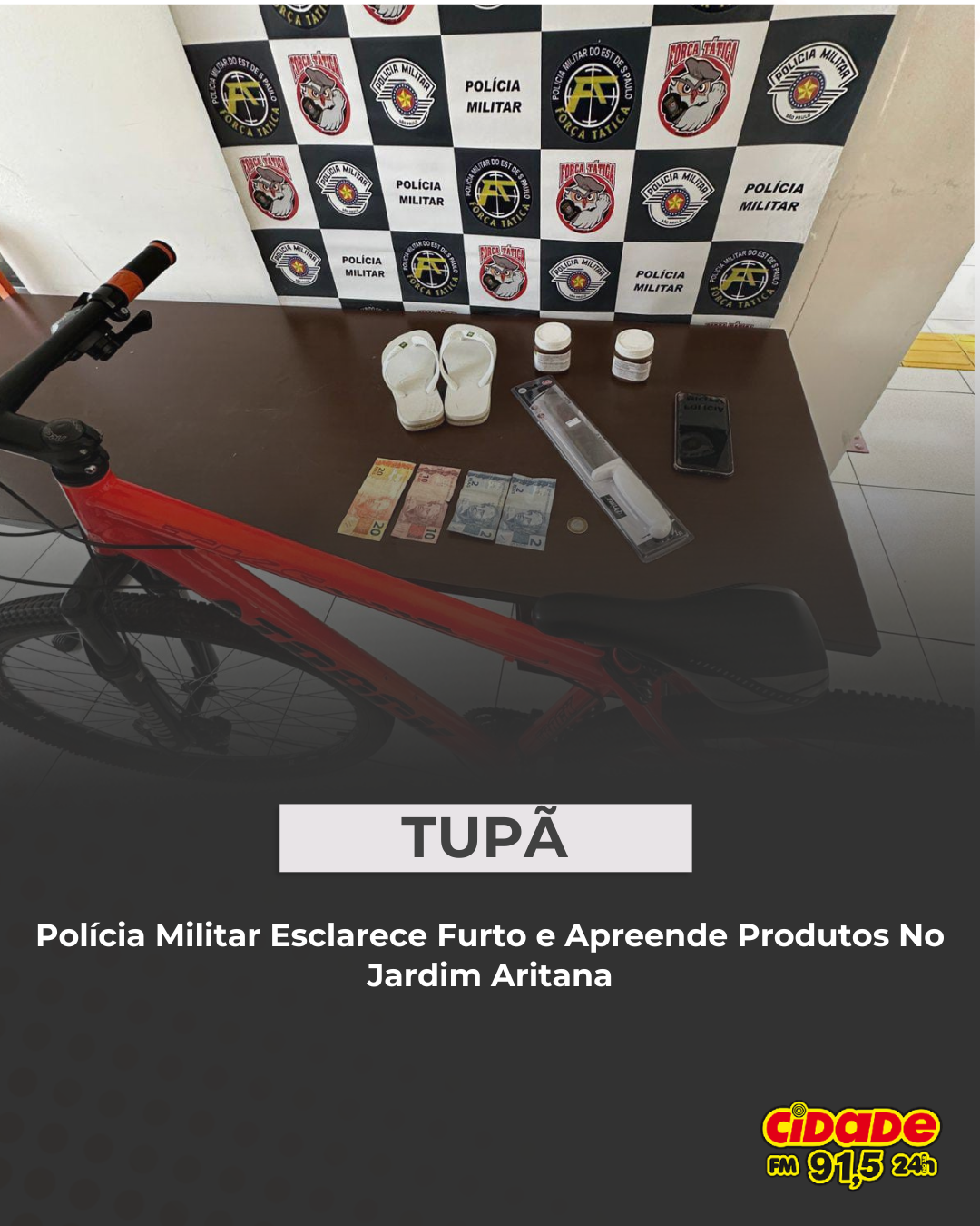 A bicicleta usada pelo suspeito foi apreendida para averiguação, e os produtos recuperados foram devolvidos ao proprietário do mercado. Segundo a PM, o indivíduo possui diversas passagens anteriores por furto e roubo na cidade.