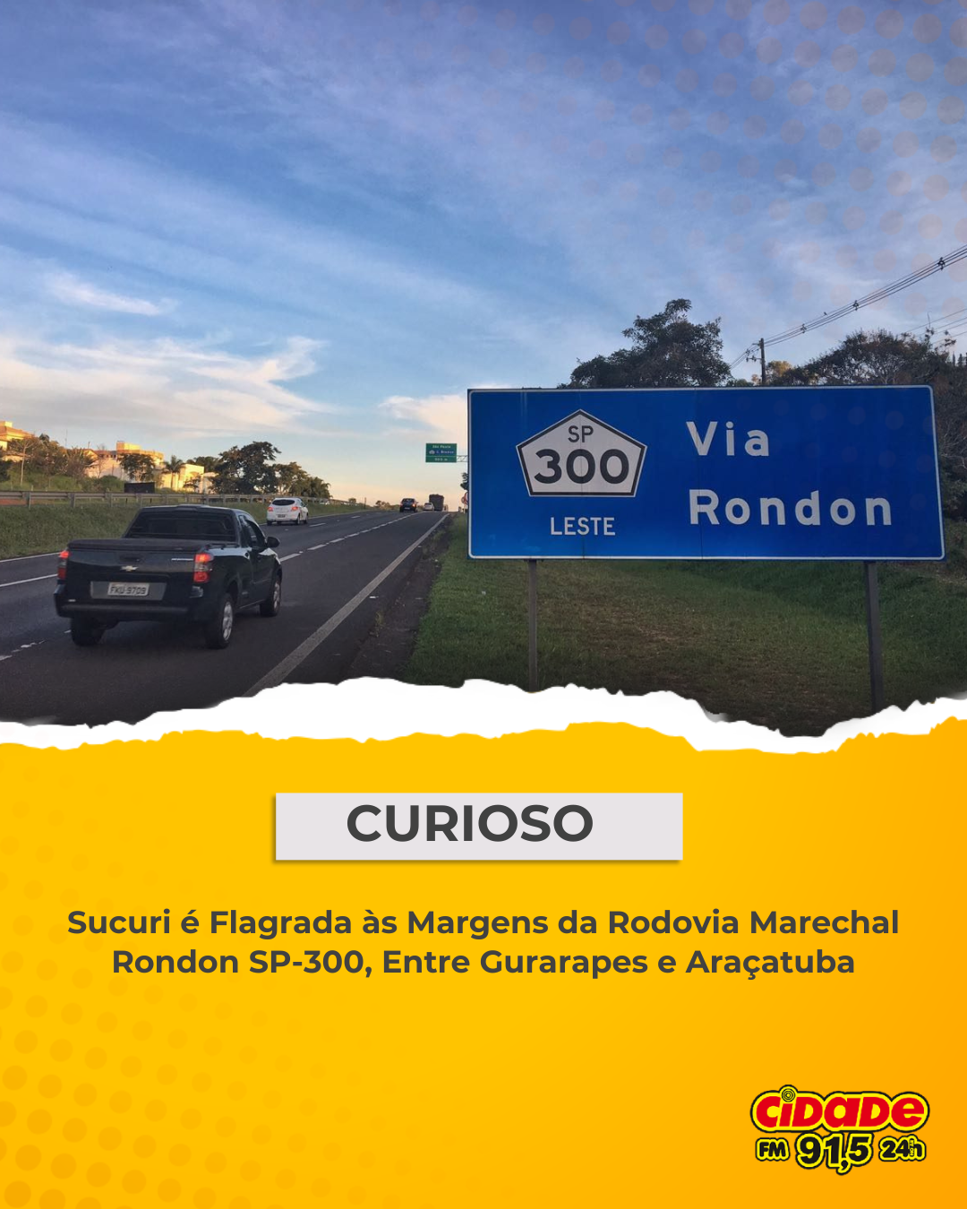 Guararapes, SP- Motoristas que trafegavam pela Rodovia Marechal Rondon (SP-300), entre Guararapes e Araçatuba, na tarde deste sábado (08), foram surpreendidos por uma sucuri às margens da pista, próximo a um posto de combustível.