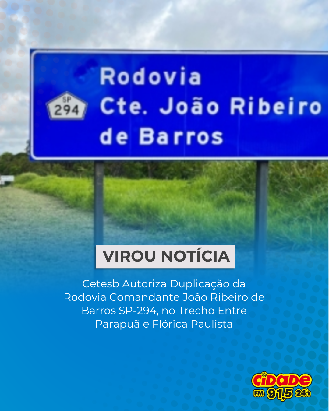 Parapuã, SP- A Companhia Ambiental do Estado de São Paulo (Cetesb) concedeu à Eixo SP Concessionária de Rodovias a Licença Ambiental de Instalação (LI) nº 2840, autorizando o início das obras de duplicação da Rodovia Comandante João Ribeiro de Barros (SP-294). O trecho contemplado vai do quilômetro 557 ao 602, abrangendo os municípios de Parapuã, Osvaldo Cruz, Inúbia Paulista, Lucélia, Adamantina e Flórida Paulista.