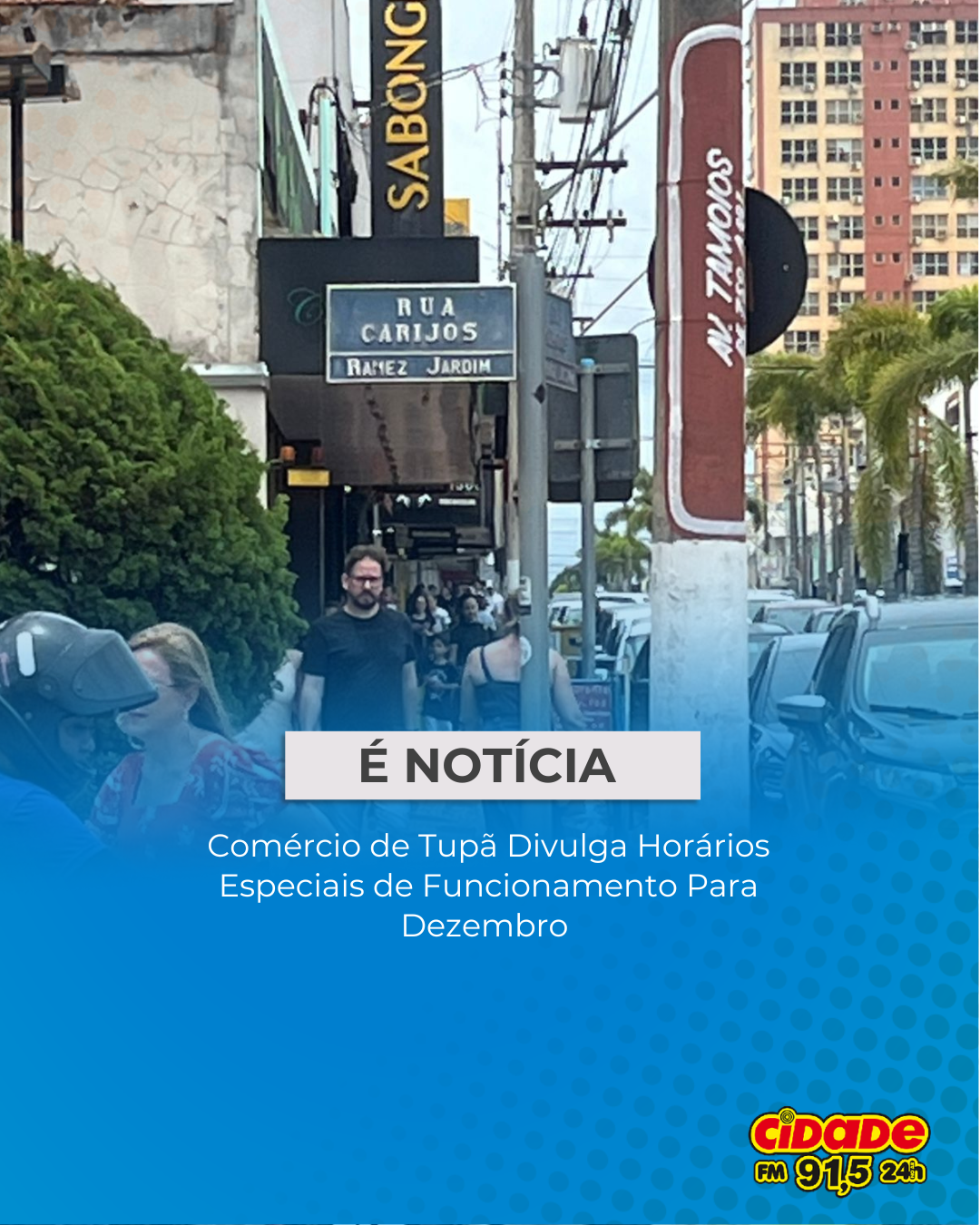 Tupã, SP- O comércio de Tupã se prepara para o período de fim de ano com um calendário especial de funcionamento, definido pelo Simcomércio. As lojas atenderão em horário ampliado a partir do dia 10 de dezembro, funcionando das 9h às 22h nos dias 10, 11, 12, 15, 16, 17, 18, 19, 22 e 23.