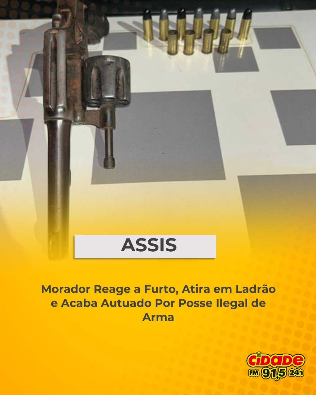 Assis, SP- Um morador de Assis reagiu a um furto em sua casa e atirou contra o suspeito na noite de terça-feira (11), na Rua José de Alencar, Vila Xavier. O ladrão foi preso em flagrante e o morador acabou autuado por posse irregular de arma de fogo.