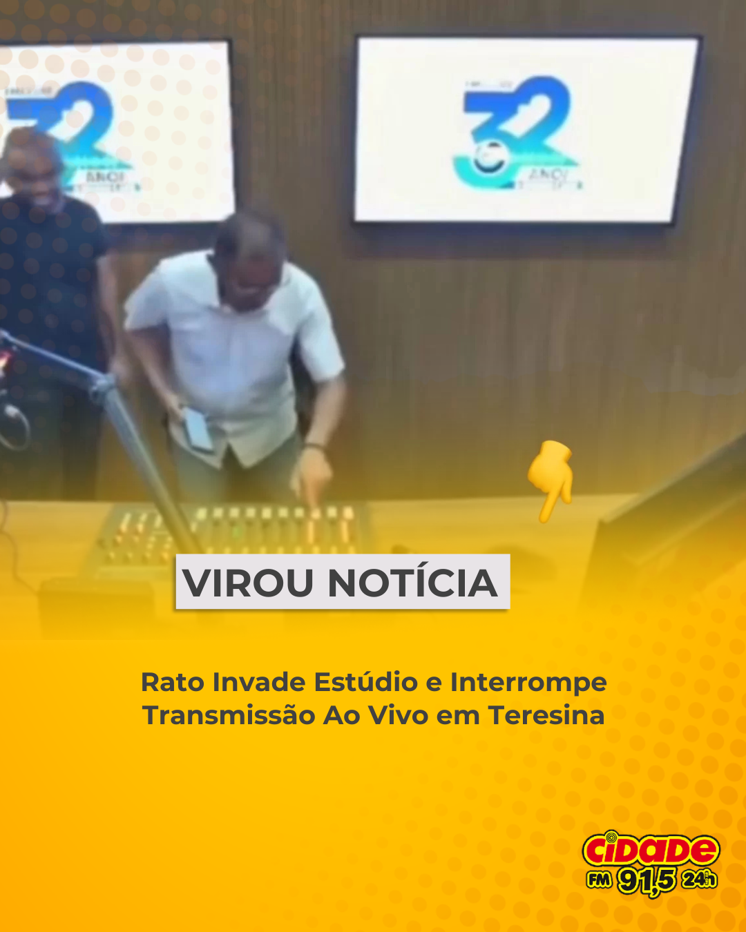 Da redação Tupã, SP- A transmissão ao vivo da rádio da TV Clube, em Teresina, precisou ser interrompida na noite desta segunda-feira após um rato invadir o estúdio durante o programa exibido entre 18h e 19h. O animal surgiu enquanto os comunicadores apresentavam a atração, causando susto e fazendo com que a equipe se afastasse rapidamente.