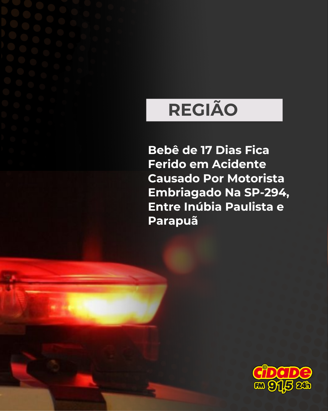 Inúbia Paulista, SP- Um bebê de apenas 17 dias ficou ferido após um acidente registrado na tarde de sábado (15) na Rodovia Comandante João Ribeiro de Barros (SP-294), entre Inúbia Paulista e Parapuã. A ocorrência foi atendida pela Polícia Militar Rodoviária durante a Operação Impacto.