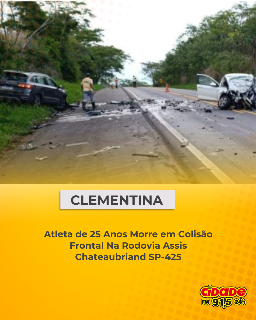 Clementina, SP- Um jovem de 25 anos morreu na manhã desta segunda-feira (17) após um grave acidente na rodovia Assis Chateaubriand (SP-425), em Clementina. A vítima, identificada como o atleta corredor Vitor Emanuel Pereira, era morador de Américo Brasiliense e conduzia um Fiat Argo branco quando colidiu frontalmente com um VW Taos dirigido por um homem de Adamantina.