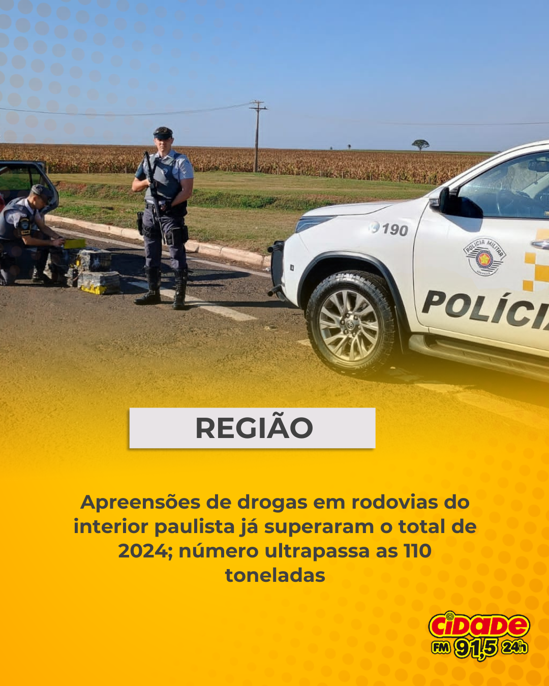 Presidente Prudente, SP- As apreensões feitas pela Polícia Rodoviária em rodovias do estado de São Paulo já ultrapassam 110 toneladas em 2025, superando todo o volume registrado no ano passado, que fechou com cerca de 106 toneladas. Os dados foram divulgados nesta sexta-feira (21) pela Secretaria de Segurança Pública (SSP).