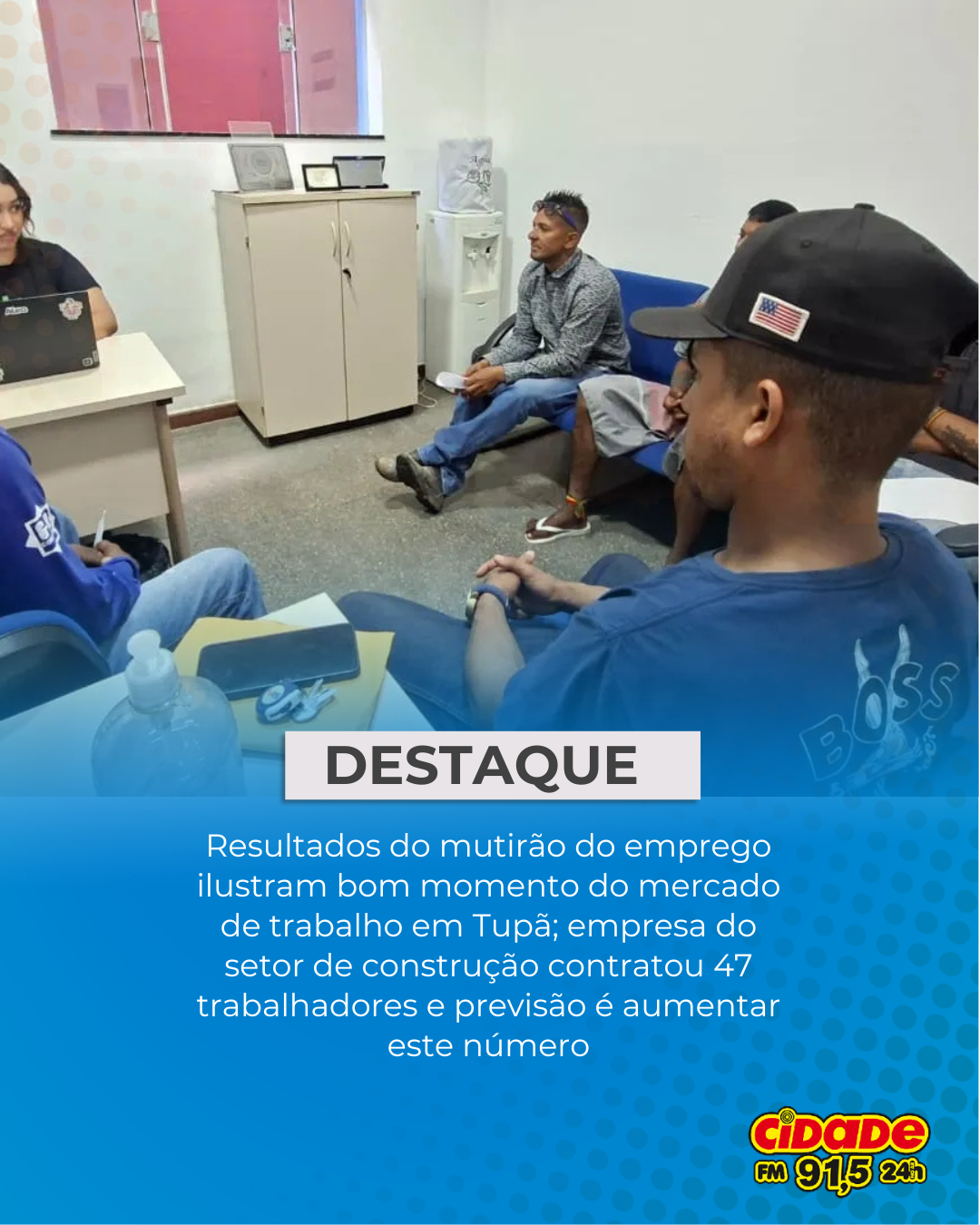 Tupã, SP- Os recentes mutirões de emprego organizados por uma empresa do setor de construção civil com apoio do Posto de Atendimento ao Trabalhador (PAT) de Tupã dão a dimensão do aquecimento do mercado de trabalho no município: no total, foram contratadas 47 pessoas e a previsão é de que o número cresça nas próximas semanas.