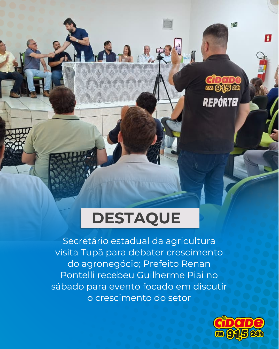 Tupã, SP- O prefeito Renan Pontelli recebeu o secretário estadual de Agricultura e Abastecimento, Guilherme Piai, neste sábado (29) para um encontro que reuniu produtores rurais e pessoas ligadas à cadeia do agronegócio e serviu para debater caminhos e analisar o momento atravessado pelo setor em São Paulo e na região de Tupã.