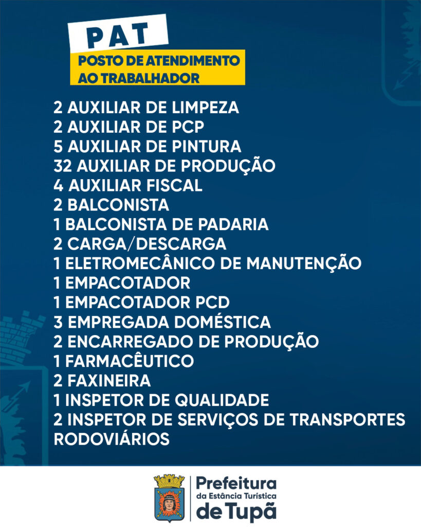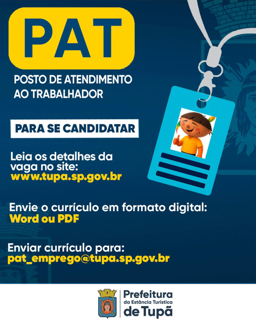 Quem está em busca de oportunidade pode ir diretamente ao PAT, que fica na rua Guaianazes, 70, na Praça da Bandeira. O atendimento acontece de segunda a sexta-feira, das 7h30 às 11h30 e das 13h às 17h. O órgão disponibiliza também informações através do whatsapp: (14) 99888-1522.