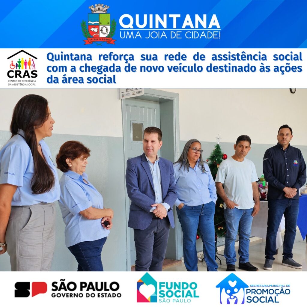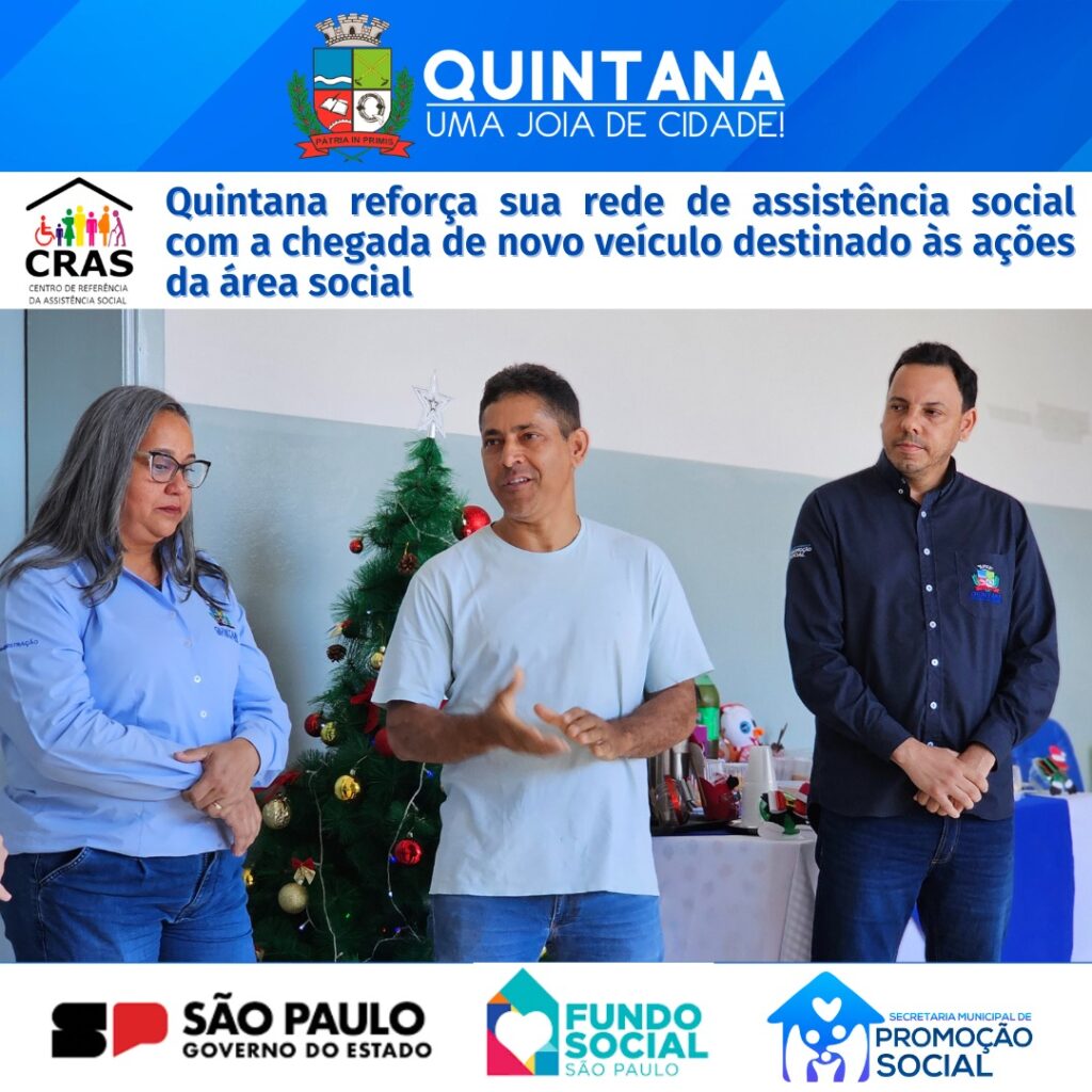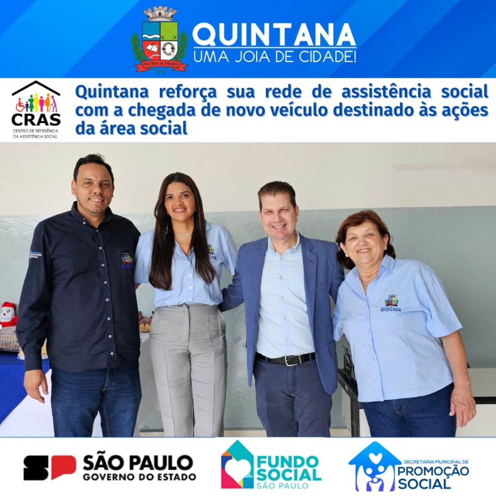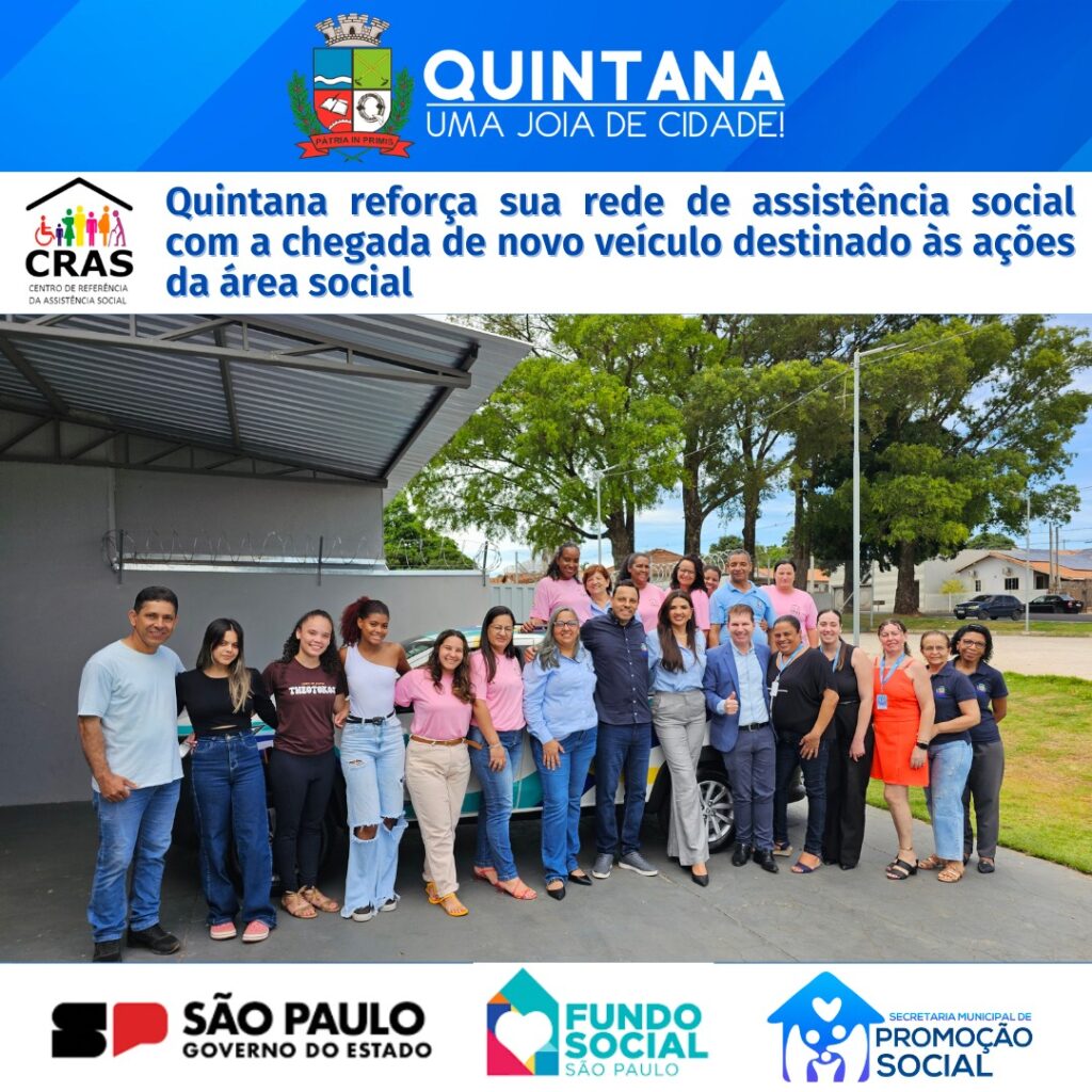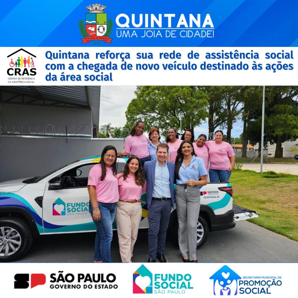 Quintana, SP- Hoje foi um dia especial para o nosso município: recebemos uma nova picape que vai fortalecer o trabalho da área social e garantir ainda mais eficiência no atendimento às famílias que mais precisam. Uma conquista que só se tornou realidade graças ao planejamento, à visão e ao empenho do Prefeito Fernando Itapuã, que não mede esforços para trazer melhorias concretas para a população.