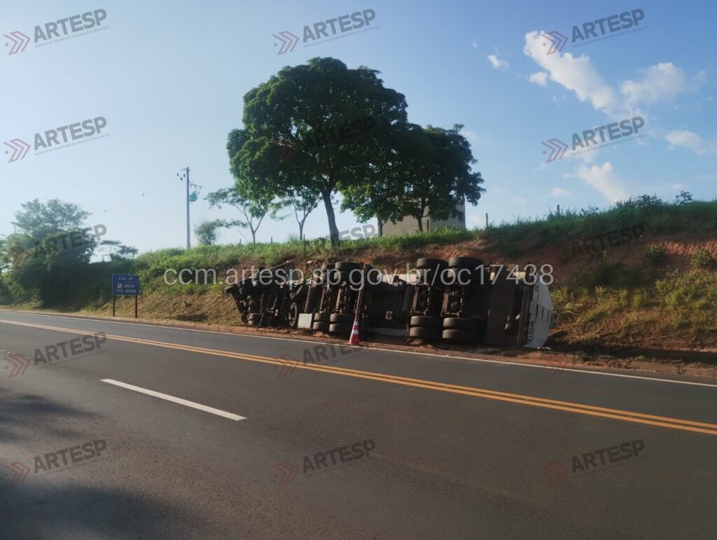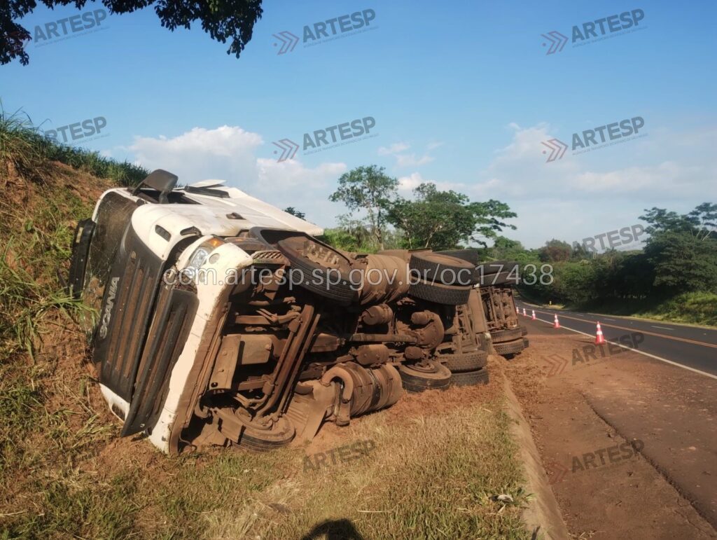 Segundo a Artesp, o condutor relatou à equipe da concessionária que perdeu o controle da direção, saiu para o canteiro lateral e atingiu uma canaleta de concreto, resultando no tombamento. Parte da carga de óleo vegetal vazou no local.
