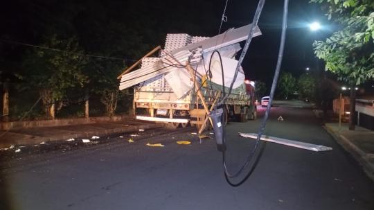 O segundo e mais grave incidente foi registrado no bairro Promorar, na Rua Jacarandá. Um caminhão carregado com telhas de isopor, que fazia entrega para uma construtora, foi direcionado de forma incorreta pelo GPS. Ao tentar corrigir o trajeto, a carga atingiu a fiação, derrubando cabos de telefonia.
