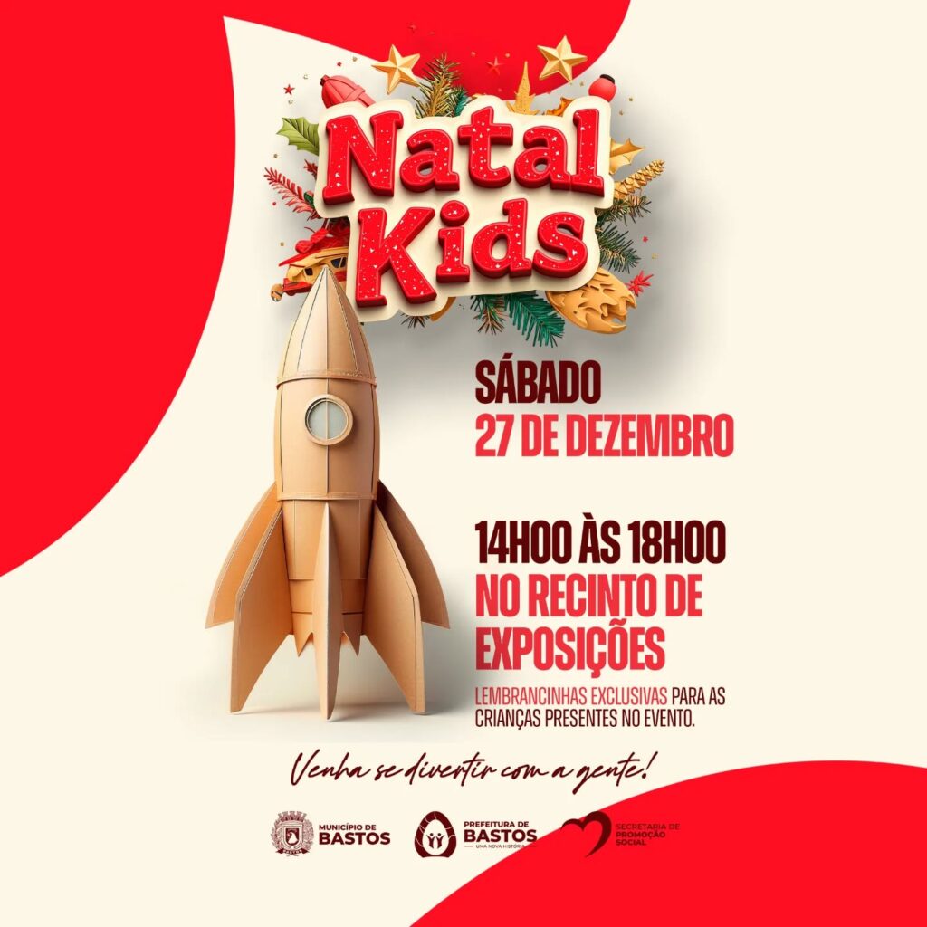 Bastos, SP- A Prefeitura Municipal de Bastos, por meio da Secretaria de Promoção Social, convida todas as famílias para uma tarde cheia de alegria, diversão e espírito natalino, preparada com muito carinho para as nossas crianças. ![]()
