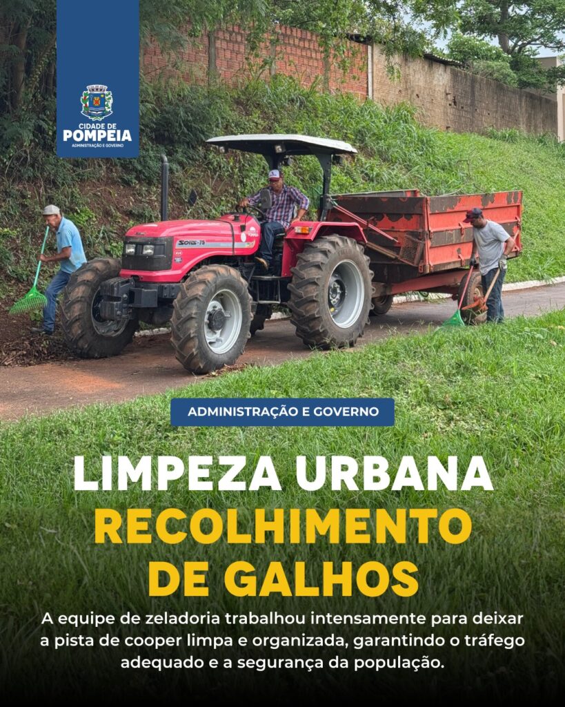 Pompeia, SP- Mesmo após as chuvas e os ventos dos últimos dias, a equipe de zeladoria está em ação, garantindo que a pista de cooper permaneça limpa, organizada e segura para todos que utilizam o espaço.