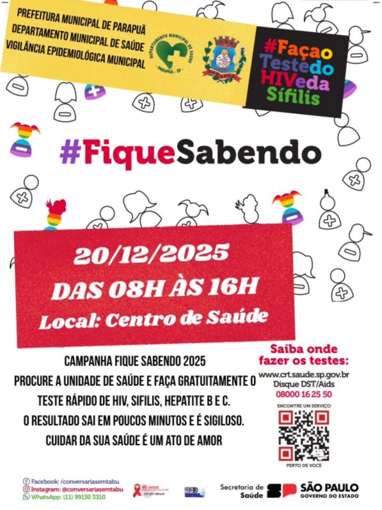 A Prefeitura Municipal de Parapuã, por meio do Departamento Municipal de Saúde e da Vigilância Epidemiológica, convida toda a população para participar da Campanha Fique Sabendo.