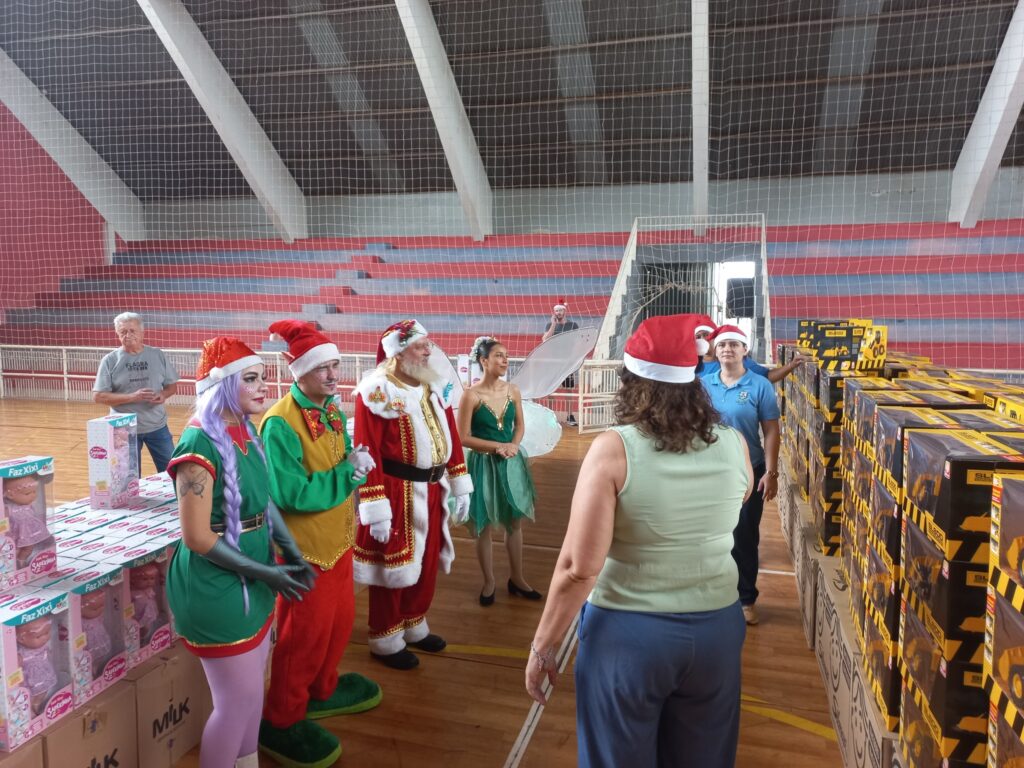 Centenas de crianças receberam os brinquedos e balas na manhã do dia 20 de dezembro no Ginásio de Esportes “Guido Pecchio”.