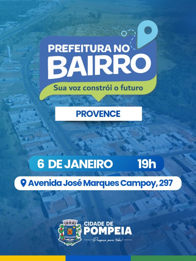 Pompeia, SP- Na próxima terça-feira, dia 6, estaremos no bairro Provence para um encontro especial. É o momento de tirar dúvidas, dar sugestões e planejar juntos as melhorias para a nossa região.