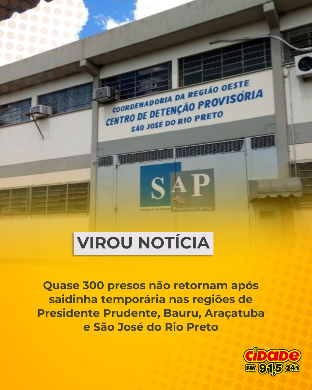 São José do Rio Preto, SP- Quase 330 detentos não retornaram às unidades prisionais após o término da saída temporária concedida entre 23 de dezembro de 2025 e 5 de janeiro de 2026 no interior de São Paulo. Segundo a Secretaria da Administração Penitenciária (SAP), o benefício foi autorizado pelo Poder Judiciário a cerca de 9,5 mil presos do regime semiaberto em diversas regiões do estado.