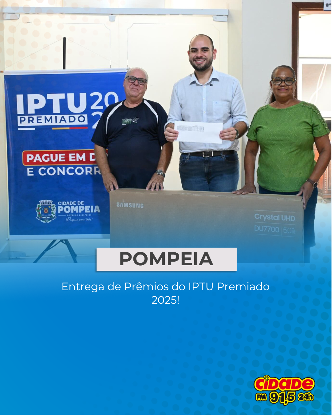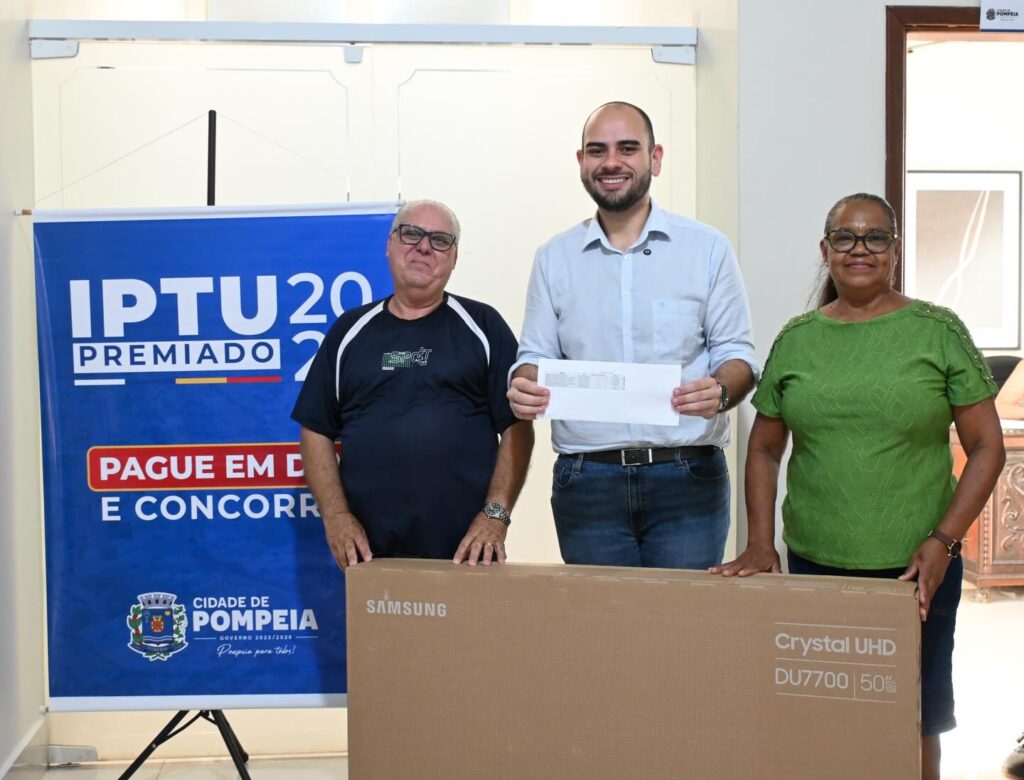 Pompeia, SP- Ontem realizamos a entrega dos prêmios do IPTU Premiado aos seis sorteados! Um momento importante de reconhecimento por termos implantado esse programa inédito, incentivando nossa população a manter o imposto em dia.