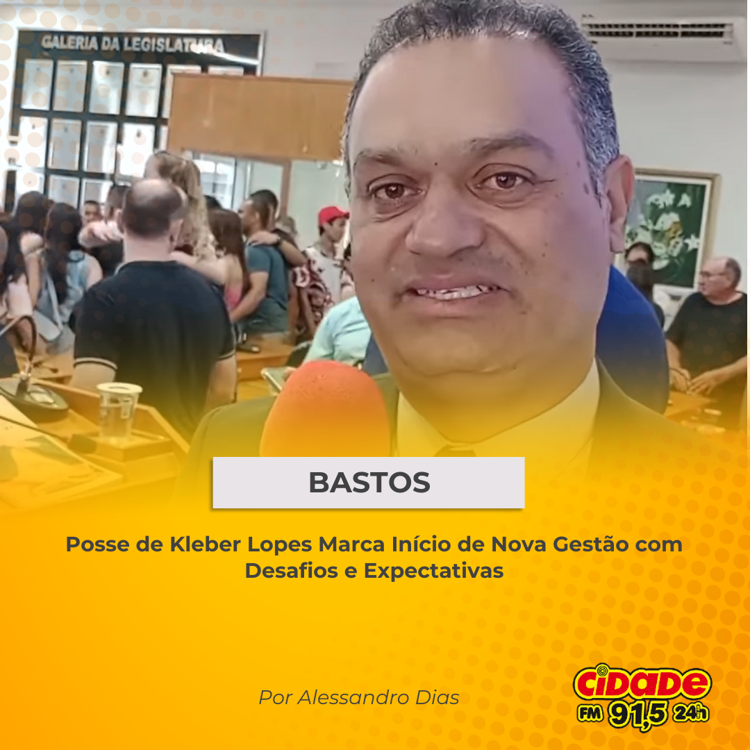Com 60,50% dos votos, Kleber Lopes, enfermeiro de 41 anos, casado e filiado ao PL, assumiu o cargo trazendo consigo a experiência de três mandatos como vereador. Ele reafirmou seu compromisso com a população bastense em áreas prioritárias como saúde, educação, esporte, geração de empregos e a valorização do funcionalismo público.