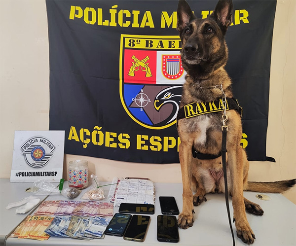 Durante as buscas no local, a cadela K-9 Rayka desempenhou papel fundamental ao localizar porções de crack sobre a mesa da cozinha. Somadas a outras drogas encontradas pelos policiais, o total apreendido foi de 135 pedras de crack e nove porções de maconha.