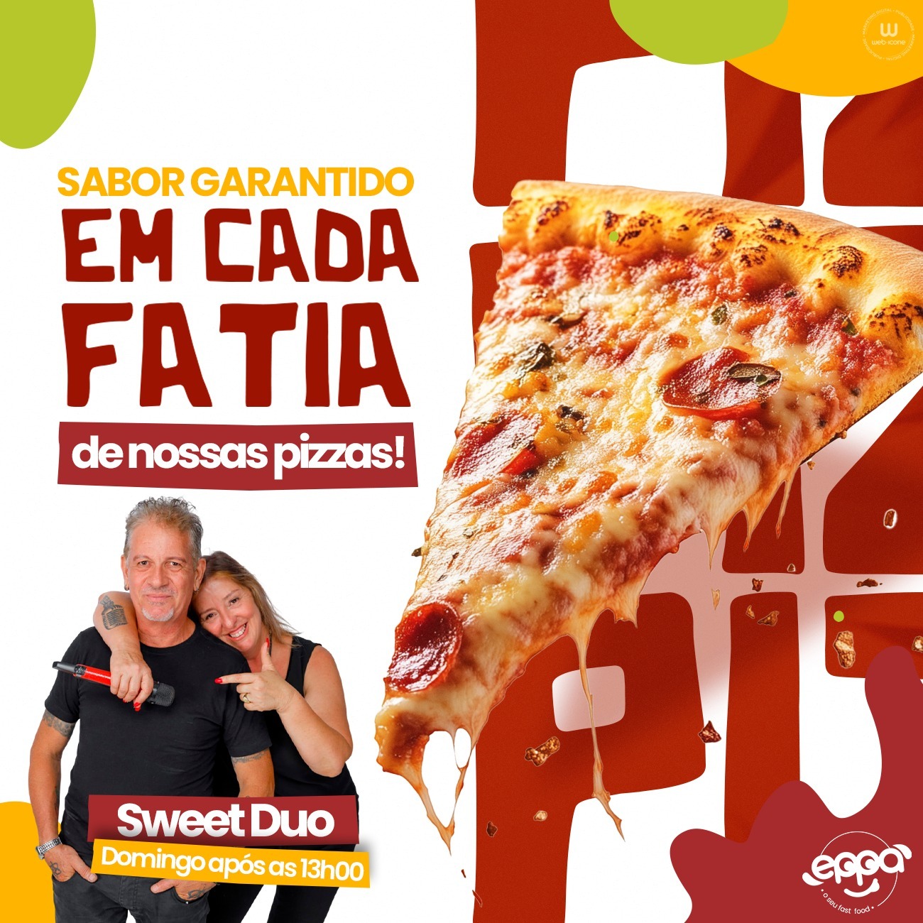 Neste domingo, transforme sua refeição em um momento especial no Eppa. Nossa pizza irresistível, feita com ingredientes selecionados e carinho em cada detalhe, é a estrela do dia! E para tornar sua experiência ainda mais inesquecível, Sweet Duo traz uma apresentação musical ao vivo, criando a trilha sonora perfeita para o seu almoço. 🎶