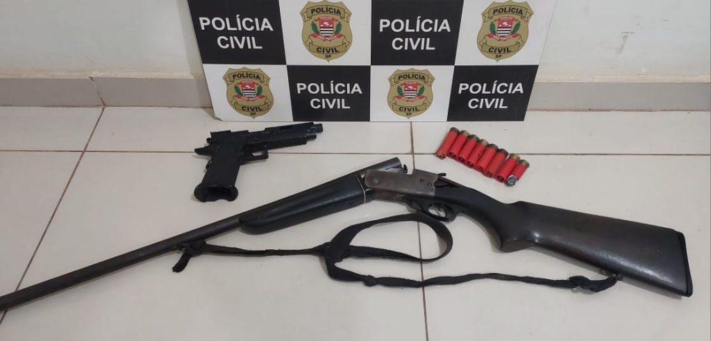 Durante a diligência, foram apreendidas uma espingarda calibre 16 com numeração raspada, oito munições do mesmo calibre e uma pistola de airsoft. O suspeito, que já possui antecedentes criminais por violência doméstica, foi preso em flagrante.